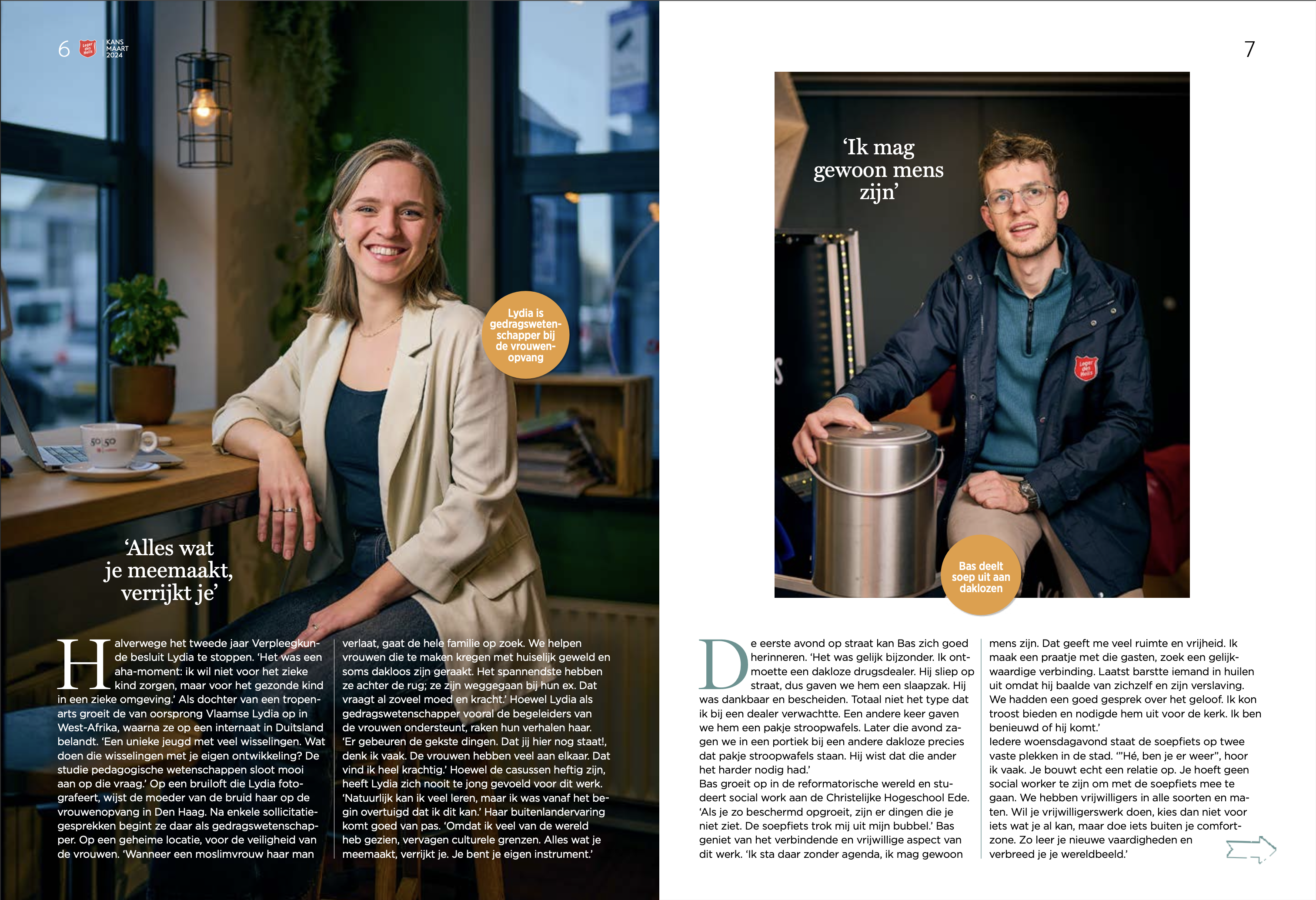 De naam van het donateursmagazine zegt genoeg: het Leger des Heils geeft mensen een kans die door het vangnet van ons afbrokkelende sociale stelsel glippen. Een paar random spreads met hoopvolle verhalen die ik opschreef: